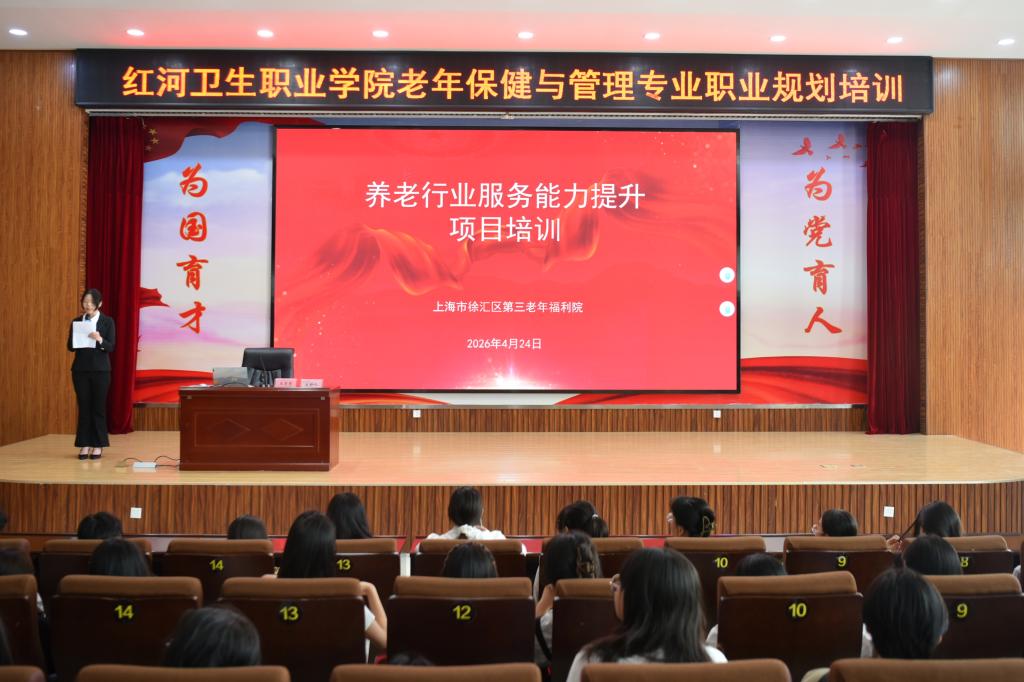 为推进校企协同育人,精准引导老年保健与管理专业学生明晰职业方向,2026年4月24日,上海市徐汇区第三老年福利院院长王荣荣、副院长左彩凤、张凤云一行到访我校,开展考察交流并举行老年保健与管理专业职业规划专...