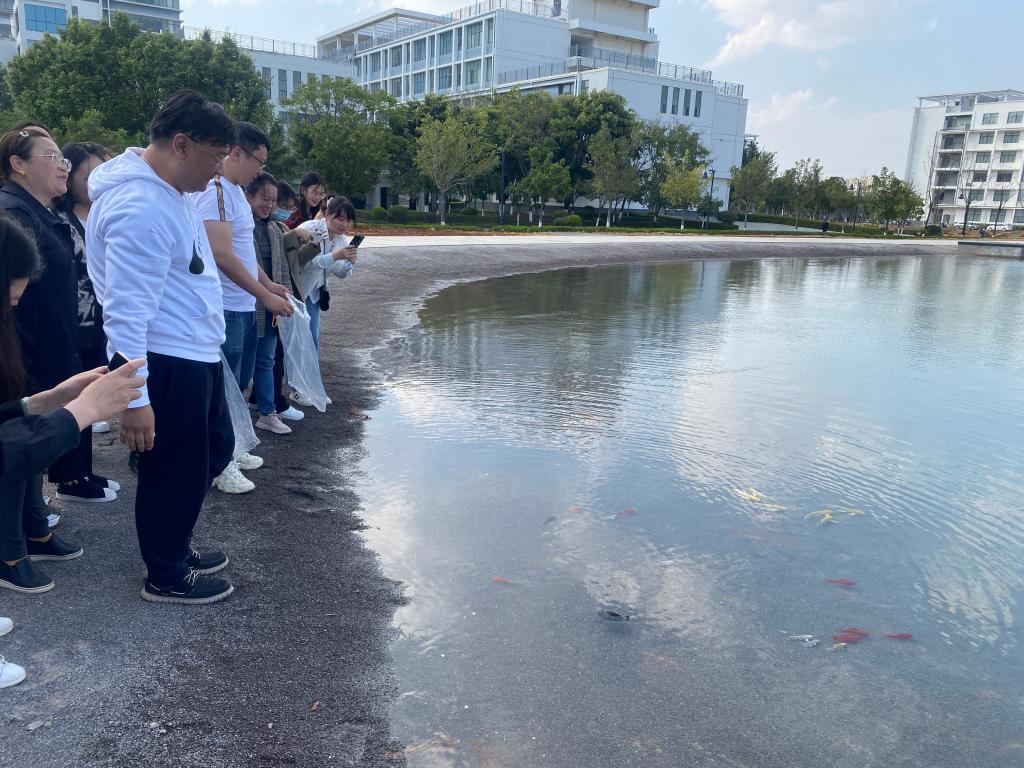 3月30日下午16点,位于红河卫生职业学院的一场温馨而有意义的活动吸引了众多师生的围观。财务科、审计科全体科室成员自愿集资购买鱼苗,到学校人工湖开展观赏鱼放养活动。财务科、审计科教职工共购买二十余条锦鲤,有金黄、橘红、黑、白四种颜色,和一只中华草龟,一同放入学校新建的人工湖中,为学校“绿美校园”建设献出了一份力量。