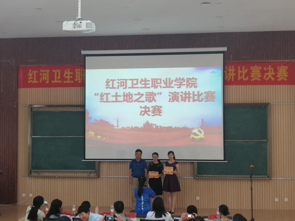 4月24日,由学院工会主办,以“红土地之歌”为主题的演讲比赛决赛在北楼教学楼阶梯教室举行。