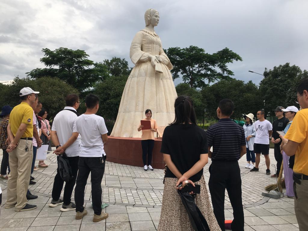 活动一开始,全体参加活动的教师在美育教研室主任万宇羽老师的带领下在南丁格尔雕像前学习南丁格尔精神,万老师富有激情的讲解,给老师们对南丁格尔有了更清晰的认识,被她无私奉献的精神所感染,并表示将以更加饱满的热情投入到教育教学工作中,为学院的发展作出贡献。