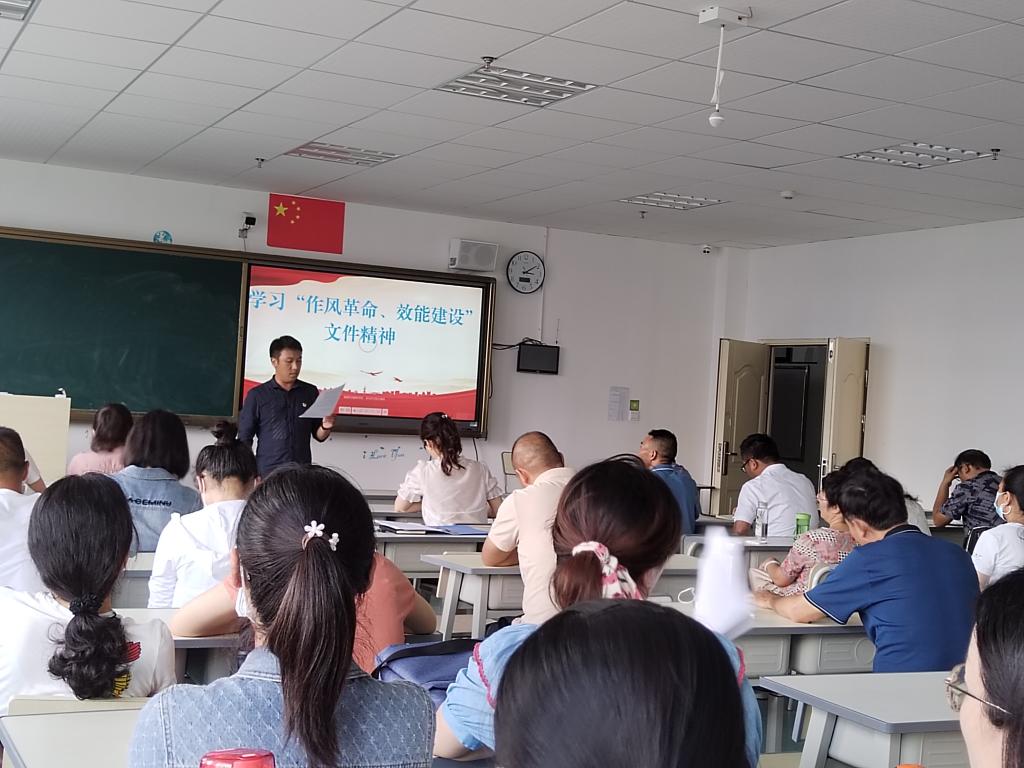 会议的第二项议程由公共课部党总支副书记桑骏凯领学“作风革命,效能革命”的相关文件精神。桑副书记要求全体教师严格落实执行“三风”建设的要求,严肃工作、会议纪律,认真执行报备及请假制度,提作风,转效能,树立效能意识。