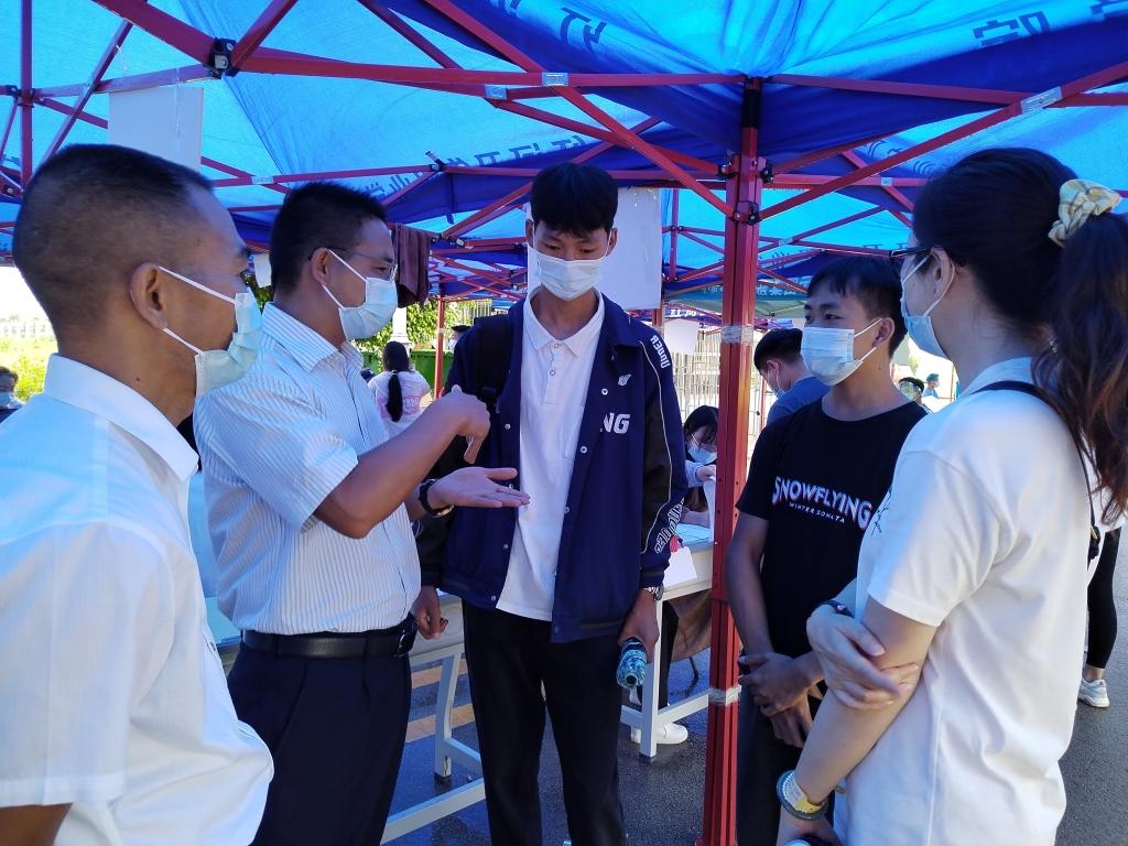 新生报到现场,公共课部党政领导班子详细了解新生报到情况,并驻足与新生进行交谈,勉励首届学子努力学习,不负自己的选择,实现个人梦想。