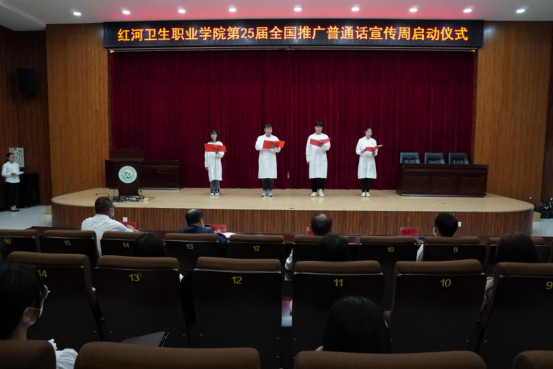 最后,红河卫生职业学院党委副书记、院长、学院语言文字工作委员会主任唐飚宣布红河卫生职业学院第25届全国推广普通话宣传周启动。