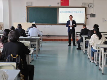 2023年11月15日下午,公共课部在综合实训楼203教室召开了期末工作安排会议。学校党委副书记周云雄到会指导,会议由公共课部主任曹学光主持,全体教师参加了会议。