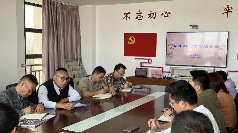 会上,公共课部教学秘书吴昌盛老师首先传达教务科新学期对升本工作的相关要求,同时对新学期的专升本教学工作作出具体安排。