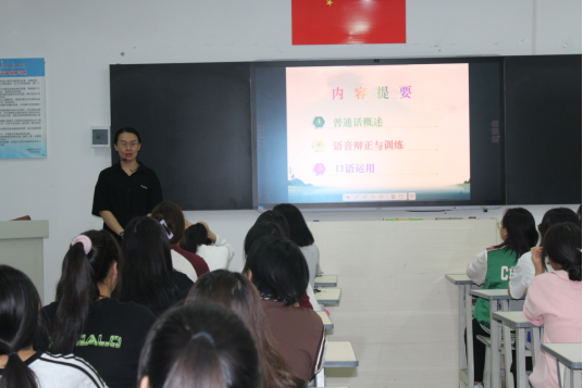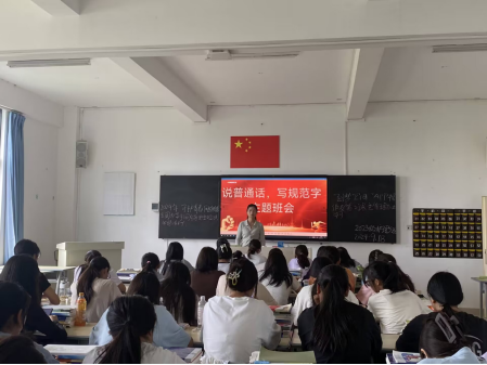 (省级普通话测评员、人文美育教研室主任王娟作“说普通话,写规范字”讲座)