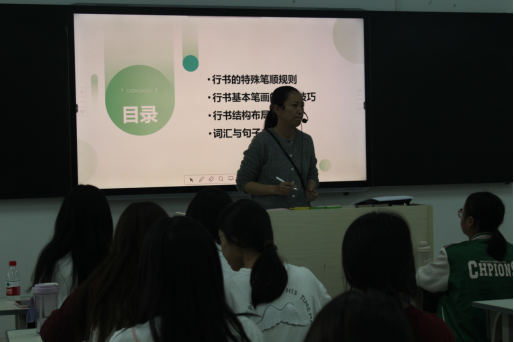 (红河州书法协会理事、蒙自市书法协会副会长、我校杨敏老师开展主题为“汉字书写的基本规律与实践”的书法知识讲座)
