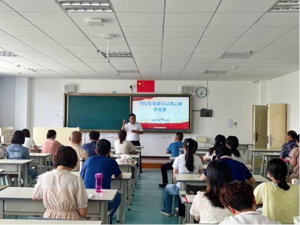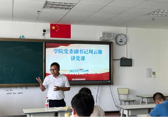 为庆祝中国共产党成立101周年,通过身边人身边事引导广大党员凝心聚力,高举旗帜跟党走,以实际行动迎接党的二十大。7月4日,学校党委副书记周云雄在综合实训中心203室为公共课部全体教职工讲“学习张桂梅先进事迹”专题党课,公共课部党总支全体党员、部门教职工、教师入党积极分子等50余人聆听党课。