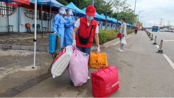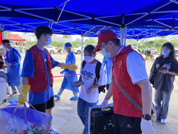 “欢迎来到卫职院,我们是学校的党员志愿者,我来帮您拿行李吧”“接过您的行囊,我们就是一家人了,孩子交给我们放心吧……”在学校3号门口外侧,党员志愿者统一着装,佩戴党员徽章,热情迎接新生及家长,耐心为家长解答各种问题,介绍学校基本情况。党员志愿者们分工合作,分别负责秩序维持、信息核验、行李搬运、宿舍安顿、咨询服务、新生报到等工作,用饱满的热情和高昂的精神状态为新生提供温暖、贴心的服务。