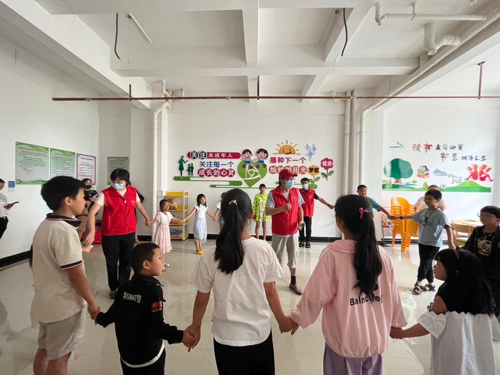 伴着轻松的音乐和欢快的节拍,参加活动的“大小朋友们”围成团,手拉手,参与“桃花朵朵开”“我是最棒的”等心理趣味游戏,活动现场气氛热烈、效果明显,为青少年减少心理不适,培养良好心理素质奠定了良好基础。