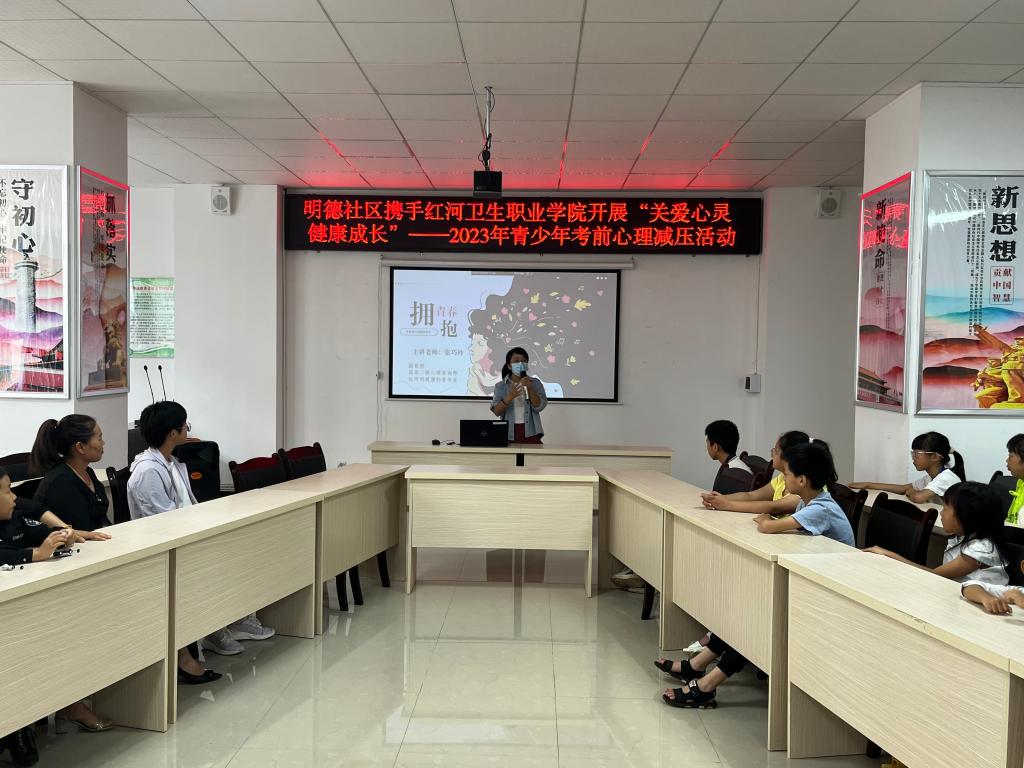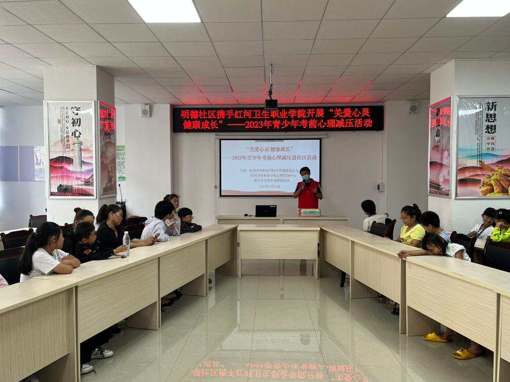 6月10日上午,公共课部党总支到蒙自市明德社区开展“关爱心灵 健康成长”——2023年青少年考前心理减压进社区活动,公共课部党总支、学校心理咨询中心、公共课部心理教研室、社区青少年和家长等40余人参加活动。