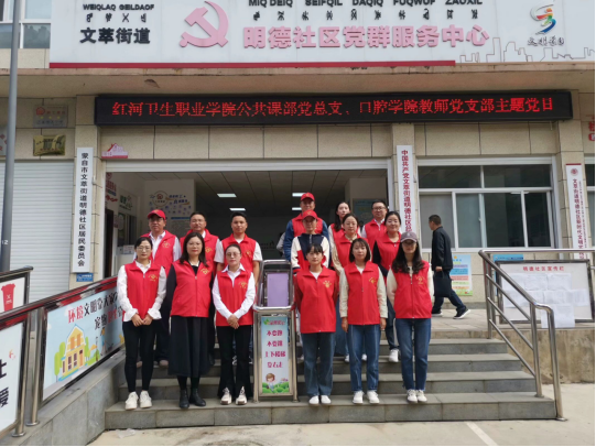 10月11日下午,公共课部党总支携手口腔学院教师党支部到明德社区开展“为民办实事”——人文健康教育进社区主题党日活动,公共课部党总支、口腔学院教师党支部共计25人参加活动。
