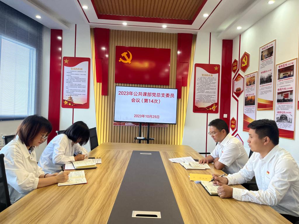 2023年10月25日,公共课部党总支组织召开2023年第14次总支部委员会。会议集中学习了习近平总书记对宣传思想文化工作作出的重要指示精神,安排部署2023年度党建工作的相关事项。公共课部党总支书记王红亮主持会议,公共课部党总支委员参加会议。