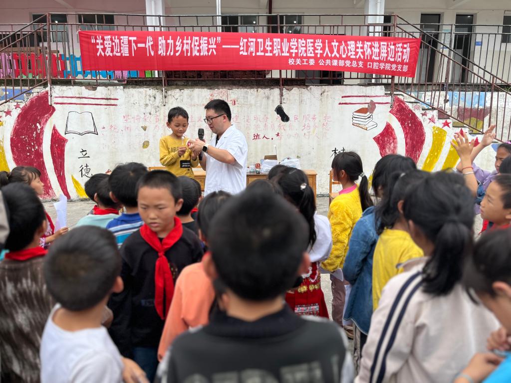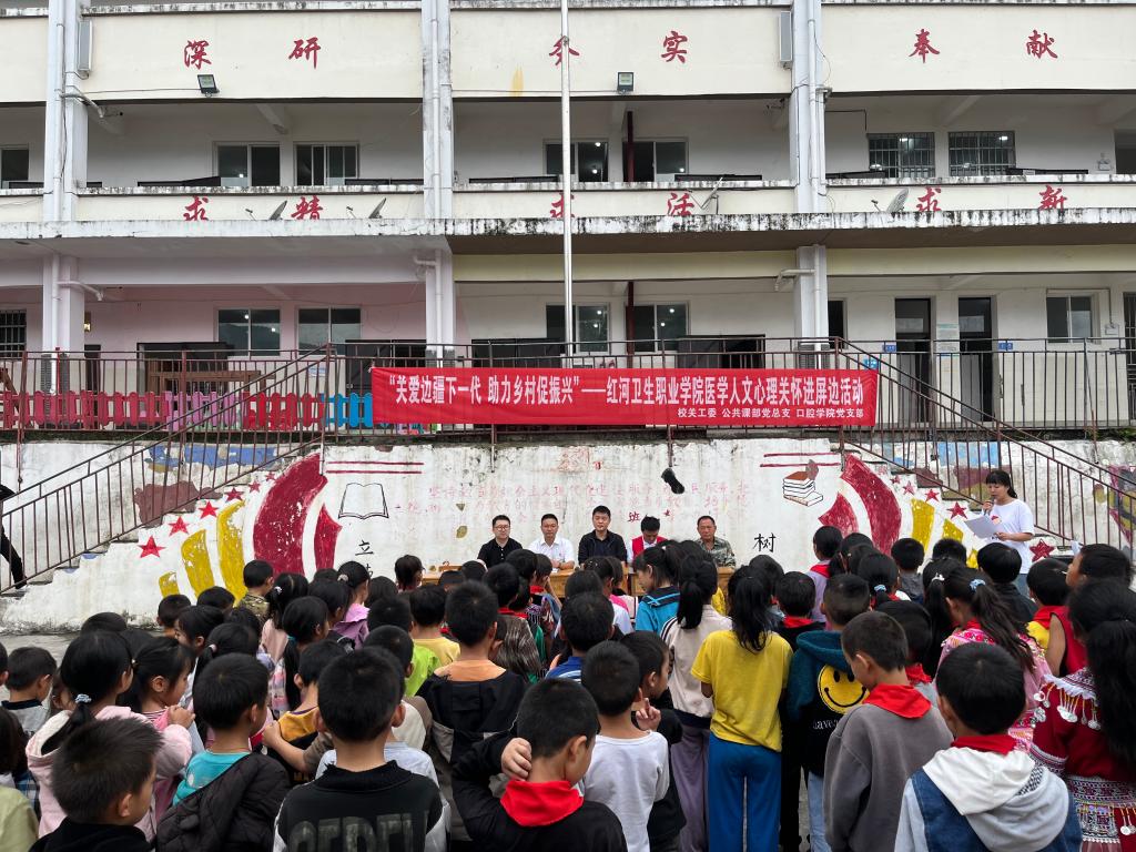 2024年5月31日,值此第74个国际儿童节来临之际,红河卫生职业学院到屏边县湾塘中心学校大冲小学开展“关爱边疆下一代 助力乡村促振兴”活动。校关工委、校团委、公共课部党总支、口腔学院教师党支部、红细胞志愿服务队师生代表,湾塘乡大冲村委会驻村工作队、班子成员和大冲小学师生等120余人参加活动。