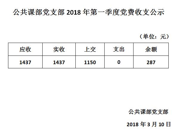 公共课部党支部2018年第一季度党费收支公示