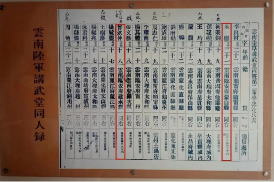 朱德同临安的结缘还要从他在云南陆军讲武堂的求学经历说起,时年21岁的朱德与当时18岁的建水县人曾师仲(曾用名曾钦仲)同为丙班第二队的学生。1909年,为了寻求救国救民的真理,朱德从老家四川仪陇踏上求学的“长征路”,跋涉11周、70余天、3000多公里到云南昆明,考入当时中国最进步最新式的军事学校——云南陆军讲武堂。由于陆军讲武堂最初不收外省籍学生,朱德就以临安府的户籍入学,并结识了建水籍的同学曾师仲。