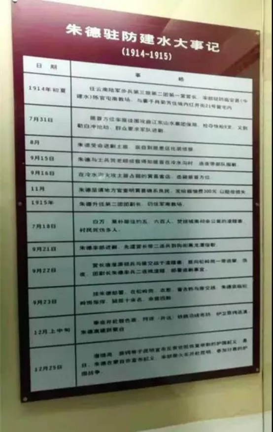 陈列室序厅正中写着“敬爱的朱总司令,建水人民怀念您”。朱德委员长一生两次到达建水,一次是1914年夏天至1915年12月,时任滇军营长的朱德奉命率部移防并长期驻军建水剿匪,保境安民,帮助百姓治理象冲河;第二次是1962年的夏天重访建水,建水的许多老同志对这次访问仍然记忆犹新。