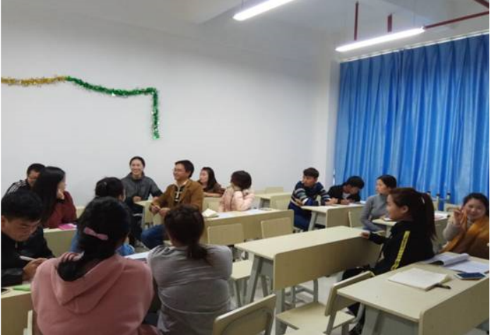 首先语言教学团队的负责人王红亮、沈世锦老师逐个与留学生交流,了解他们的学习情况和存在的困难。任课的王碧娇、高一雅、张婷、俸星星等几位老师对上课的情况及发现的问题做了汇报和分析。通过总结,大家认为当前语言教学整体推进情况良好,但存在同学间语言素养两极分化严重的实际问题。