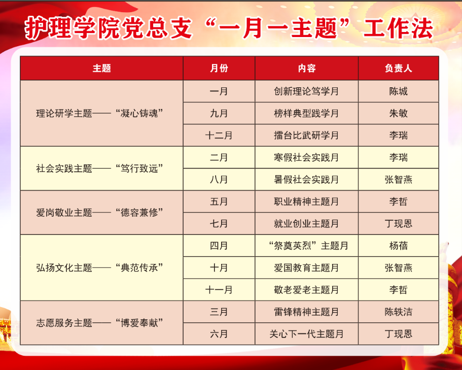 中共红河卫生职业学院护理学院总支部委员会成立于2020年12月,2021年1月选举产生第一届支委班子,下设三个教师党支部。护理学院党总支坚持以习近平新时代中国特色社会主义思想为指导,充分发挥党组织的战斗堡垒作用,注重理论学习与实际工作相结合,注重党建引领作用发挥,践行全心全意为人民服务的初心和使命,本着“为党育人,为国育才”的目标,遵循“厚德至善、医技精良”的校训,培训医疗护理相关人才,现将护理学院党总支基本情况介绍如下: