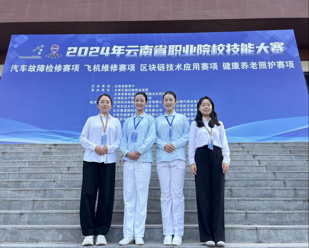 2024年9月25日-28日,由云南省教育厅主办的2024年云南省职业院校技能大赛高职组“健康养老照护”赛项在云南交通运输职业学院举行,本次比赛共有来自全省23个参赛队的45名选手同台竞技。经过激烈角逐,护理学院2022级护理专业7班李俊蓉同学总成绩排名第七、2022级护理专业4班鲍柯彤同学总成绩排名第八,均荣获二等奖。