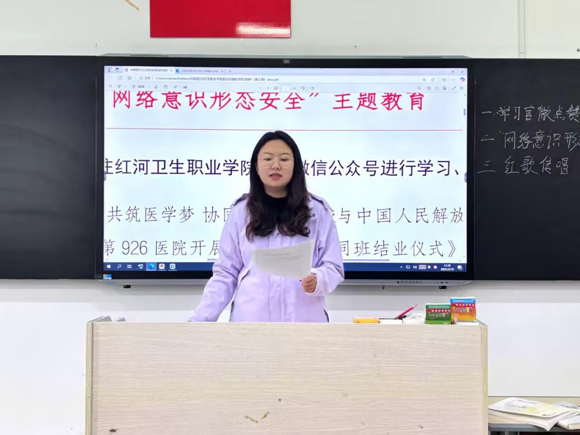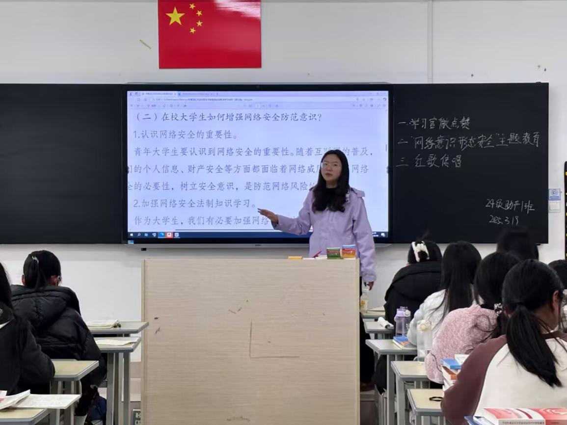 为了增强同学们的网络安全防范意识,提高学生自我保护能力,护理学院于2025年3月19日在教学楼北505组织开展网络意识形态安全主题教育,由护理学院教师第一党支部尹箫然老师为2024级助产1班全体同学作宣讲。