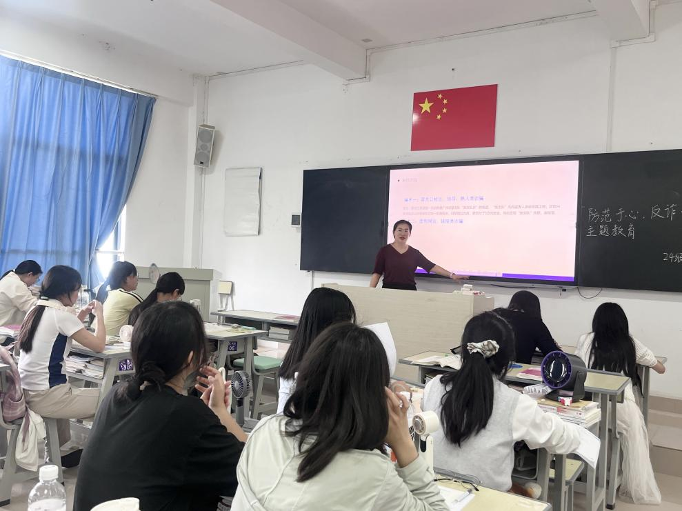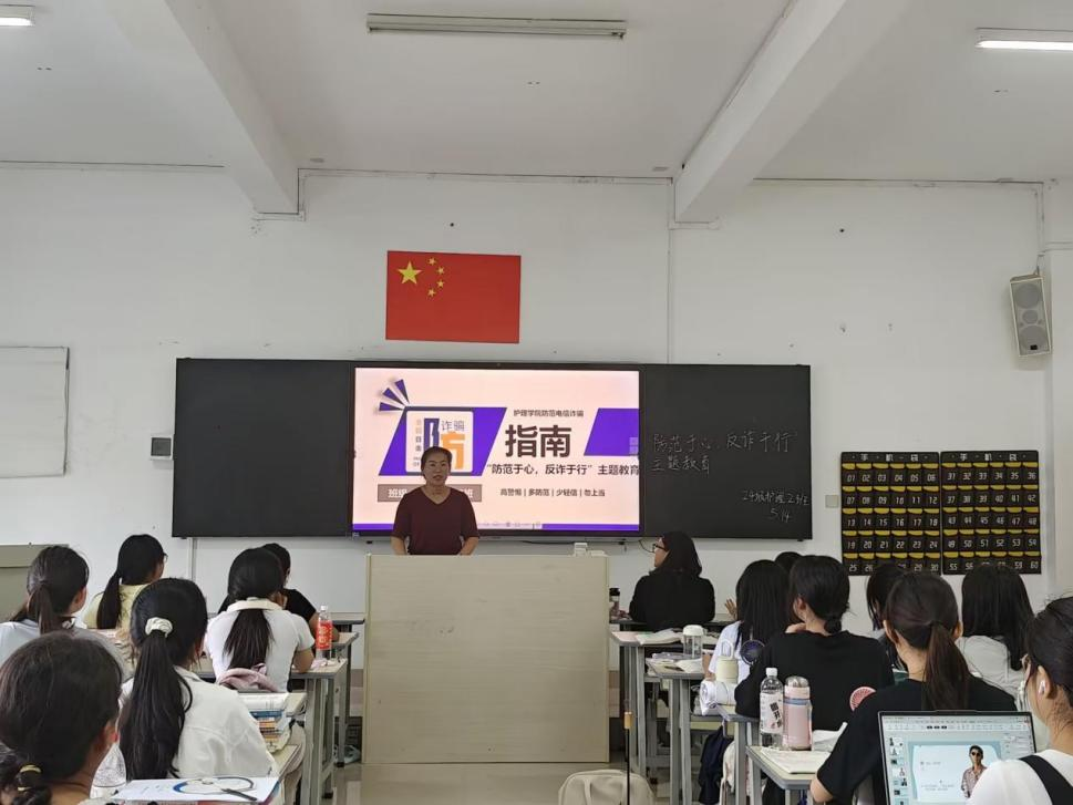 为增强师生反诈意识,筑牢校园安全防线,护理学院于2025年5月14日在教学楼北510开展“防范于心,反诈于行”防范电信诈骗主题教育,护理学院教师第一党支部组织委员杨芳老师为2024级护理2班全体同学作宣讲。