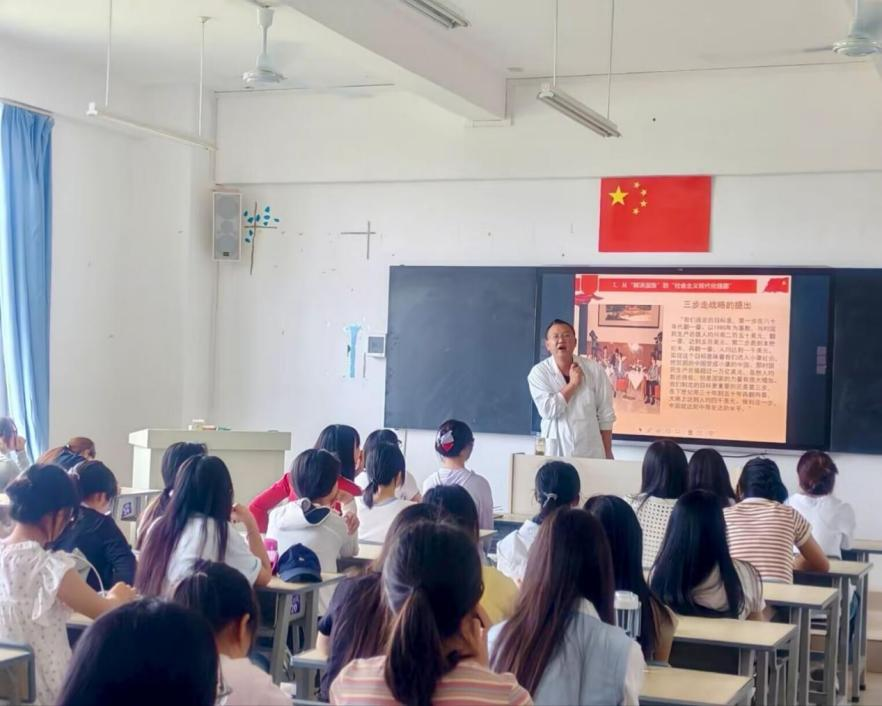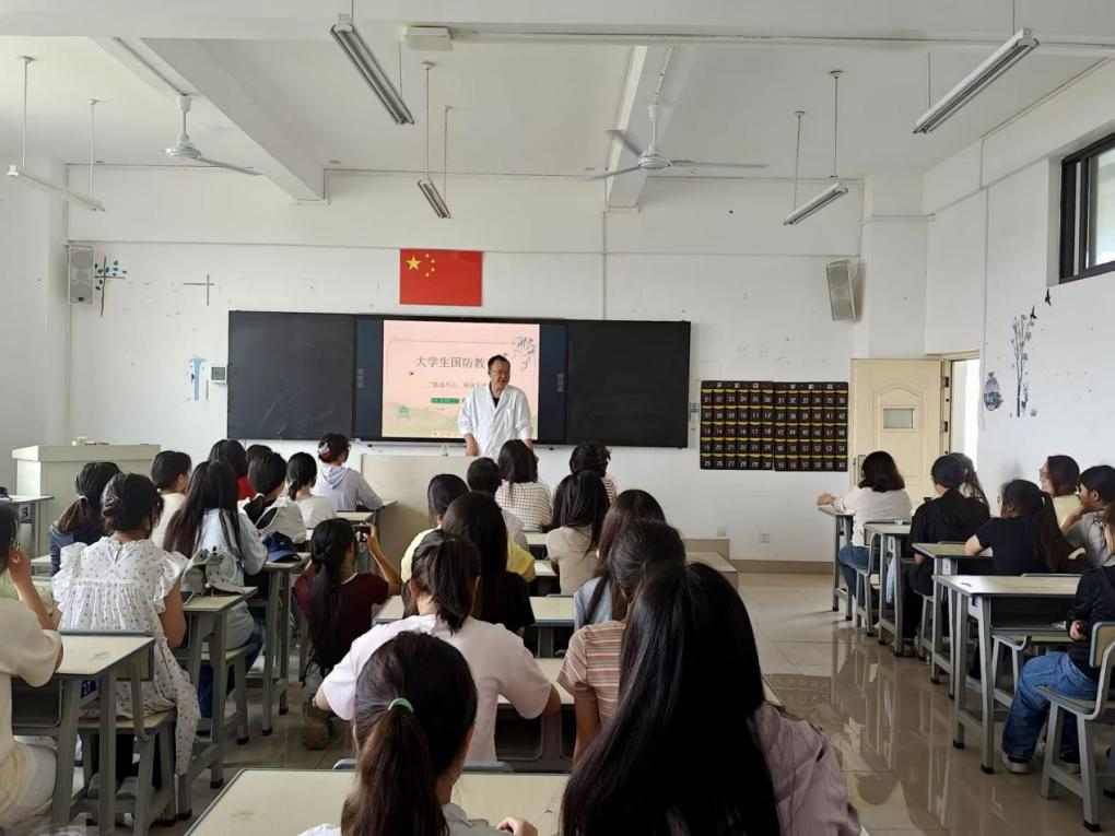 为深入贯彻全民国防教育精神,增强师生国防观念与爱国意识,2025年5月14日,护理学院在北教学楼612教室开展了以“铁血丹心,铸就军魂”党建引领思想政治教育。护理学院党总支副书记陈城老师担任主讲人,带领护理学院60名学生代表回顾历史、聚焦当下、展望未来,开启了一场热血澎湃的国防教育之旅。