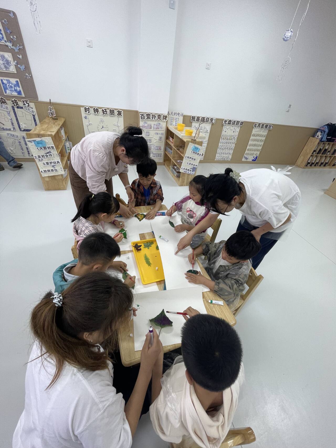 “拓印树叶・感知生命”互动游戏现场童趣盎然。团委书记张智燕老师带领孩子们采集树叶,在宣纸上拓印出脉络分明的自然图案。“树叶的纹路像我们的血管一样运送养分呢!”孩子们边拓印边惊叹自然奥秘,不少孩子将拓印作品贴在胸前,自豪地说:“这是我的‘健康勋章’!”