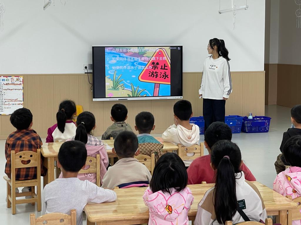 活动中,护理学院师生以防溺水绘本《生命只有一次》为载体,开启沉浸式安全教育。通过“小主人公河边冒险”的情节演绎,配合动画短片展示溺水危险瞬间,用“如果看到小伙伴落水该怎么办”的互动提问,引导孩子们牢记“不私自下水、不盲目施救、及时呼救”的安全准则。当讲到“生命像小树苗一样脆弱”时,孩子们纷纷举手分享“爸爸妈妈说不能去河边玩”,生动的教育让安全意识深植童心。