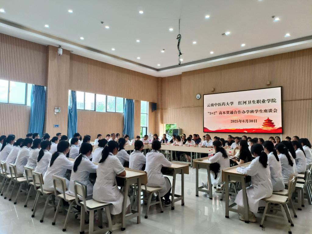 同期举行的“3+2高本贯通班学生座谈会”成为活动亮点。云南中医药大学领导、教师与红河卫职院护理学院师生代表深入对话。高本班学生就课程衔接、升学转段等焦点问题建言,两校教师现场回应培养方案优化措施。现场师生围绕学分互认、实践教学资源共享达成多项共识,通过此次座谈会,加强了两校对“3+2”高本贯通学生的管理与指导,为学生的成长成才奠定了基础。