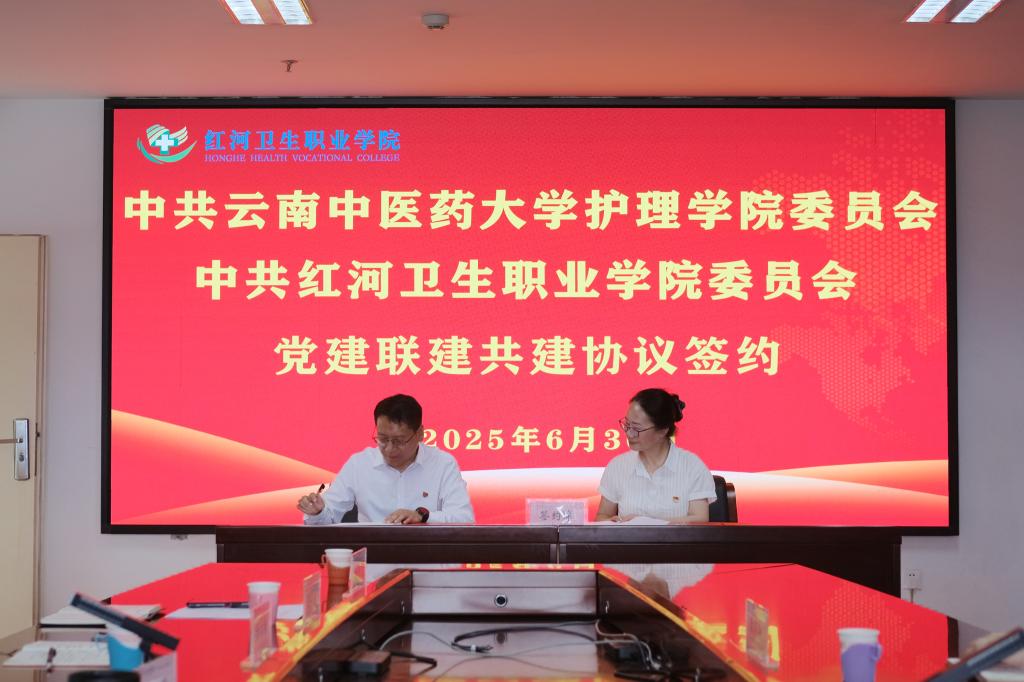 为促进中医药教育事业高质量发展,强化校际协作育人机制,2025年6月30日,红河卫生职业学院与云南中医药大学开展深度调研交流活动。双方聚焦高本贯通合作办学、党建业务融合与中医药文化传承创新,通过红色教育基地研学、党建联建签约及师生座谈会等形式,共谋发展新路径。
