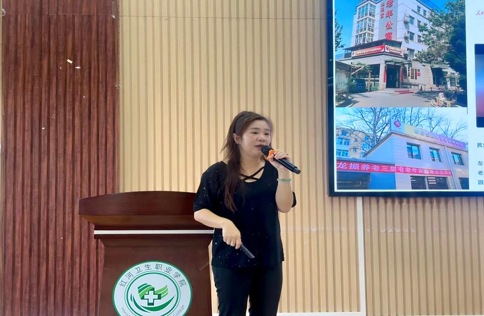随后,她结合社会现状分析行业趋势:老龄化加深与健康意识增强推动护理行业发展,临床护理、社区护理、老年护理等岗位人才缺口显著,专业就业前景广阔。