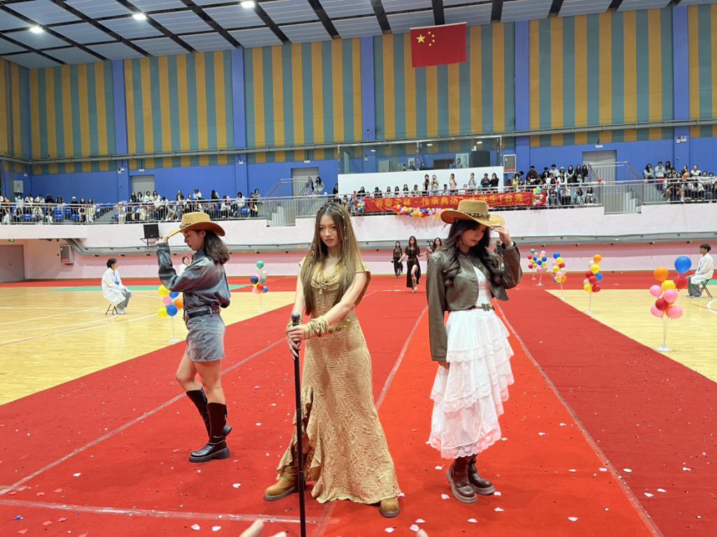 活动在活力四射的开场舞中正式拉开帷幕。整场 T 台秀以服饰为核心载体,用多元风格搭建起文化交流的舞台:古风组模特身着马面裙、传统汉服登场,衣袂翩跹间勾勒东方美学的雅致意境,尽显中华服饰的千年韵味;民族组队员身着各民族盛装踏歌而来,裙摆翻飞间彰显民族气魄,银饰碰撞的清脆声响中诉说着古老的民族传奇。