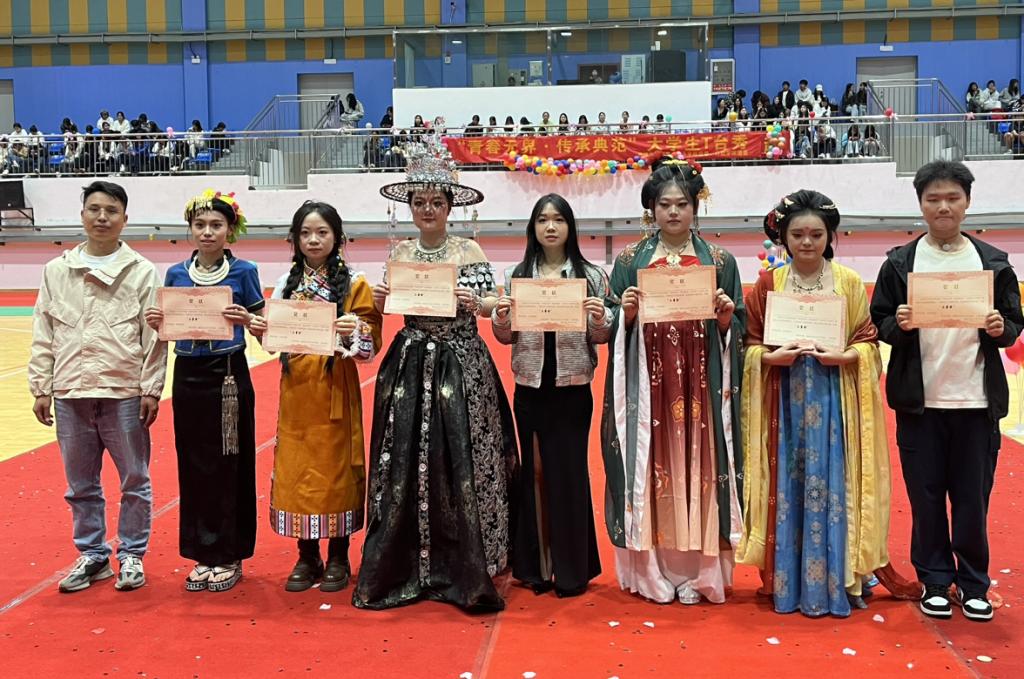 活动尾声,护理学院党总支书记陈城为本次 T 台秀作总结讲话,肯定了活动对学生文化素养与表现力的提升作用,鼓励学子们持续探索传统与现代的融合之道。随后进入激动人心的颁奖环节,在场老师为获奖的同学颁奖。
