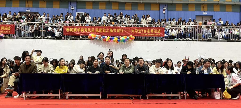 为鼓励学生打破审美边界、勇于探索文化表达,红河卫生职业学院护理学院团委协中医学院、口腔学院团委于 2025 年 10 月 24 日 18:30 在学校体育馆成功举办 2025 年“青春无界,传承典范” 大学生 T台秀。红河卫生职业学院纪委书记杨坤,护理学院院长陈云梅,护理学院党总支书记陈城,临床与公共卫生学院党总支副书记廖洪阳出席活动。统战部、校团委、宣传部、口腔学院、中医学院、临床与公共卫生学院、护理学院9名教师与500余名学生参加活动。