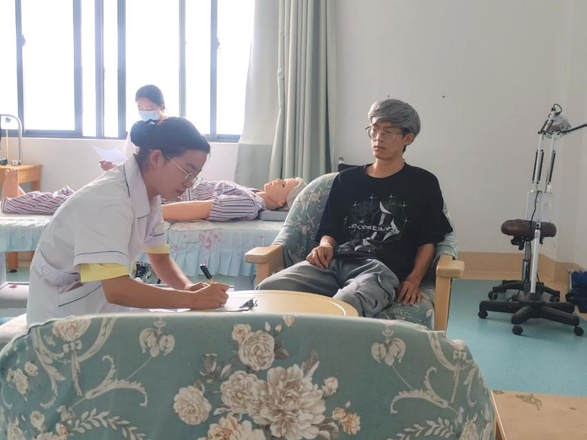 红河州健康养老照护技能大赛校级初赛在善技楼南楼5楼501、502健康管理实训室顺利举行。本次大赛紧密响应党的二十大“实施积极应对人口老龄化国家战略,发展养老事业和养老产业”的号召,为健康养老领域培育高素质技术人才。