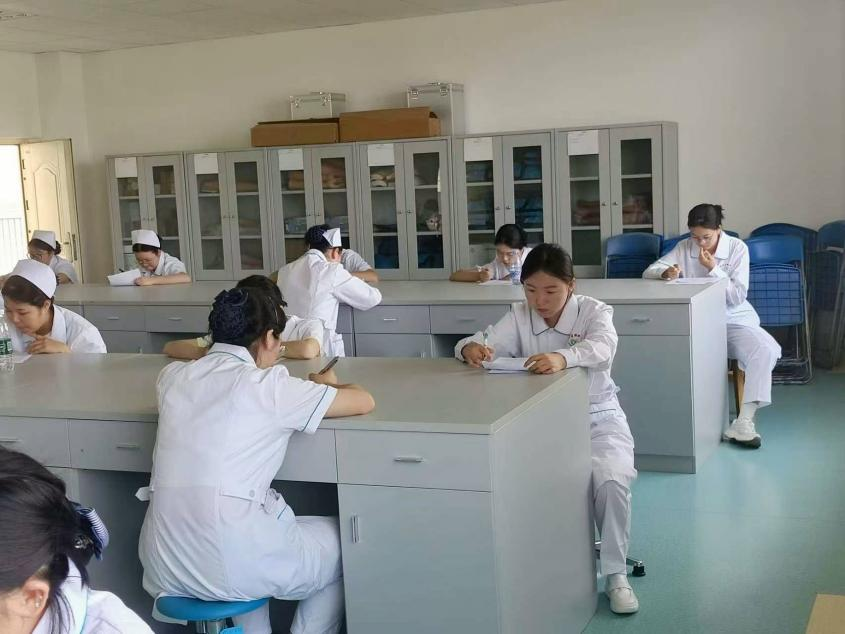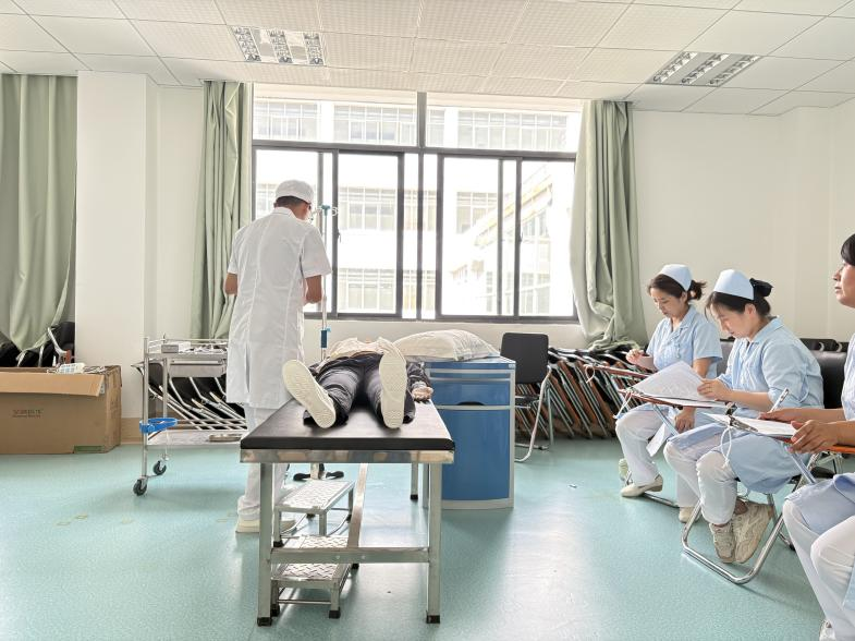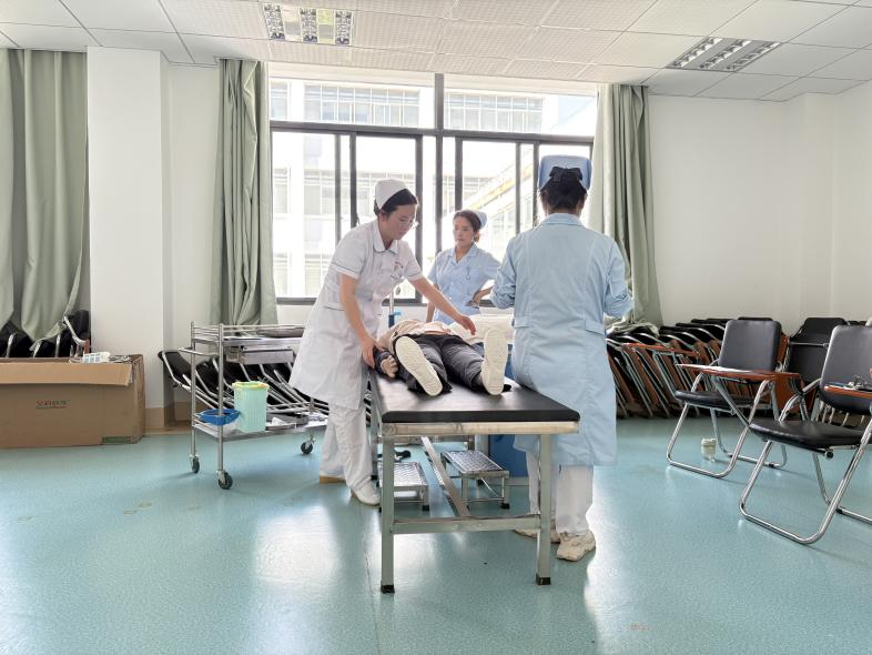 红河州护理技能大赛校级初赛于善技楼北楼401和403教室正式拉开帷幕。上午的理论考试中,选手们沉着应答,以最好的实力应对考试,之后40余名参赛选手抽签后进入实操考场善技楼南405和407,选手们身着整洁的护士服,精神饱满、动作娴熟,以专业的操作手法和严谨的态度完成每一个步骤,充分展现了扎实的护理技能功底和良好的职业素养。在心肺复苏环节,选手们争分夺秒,精准判断、迅速施救。评委团全程严格评分,确保比赛公平公正。