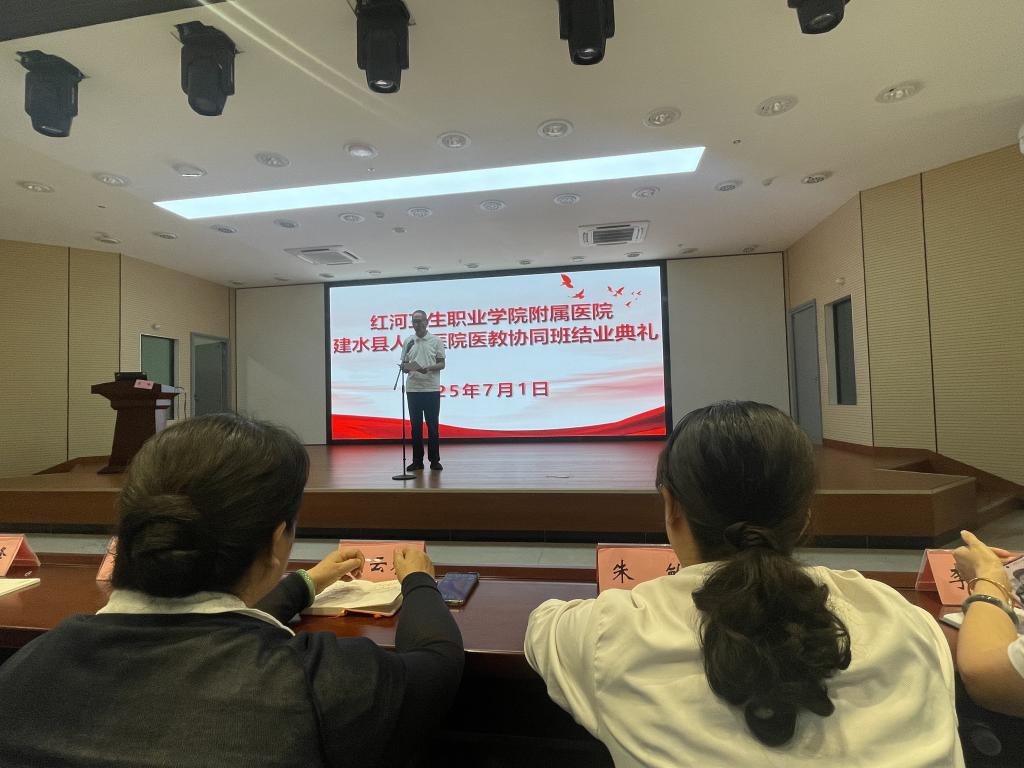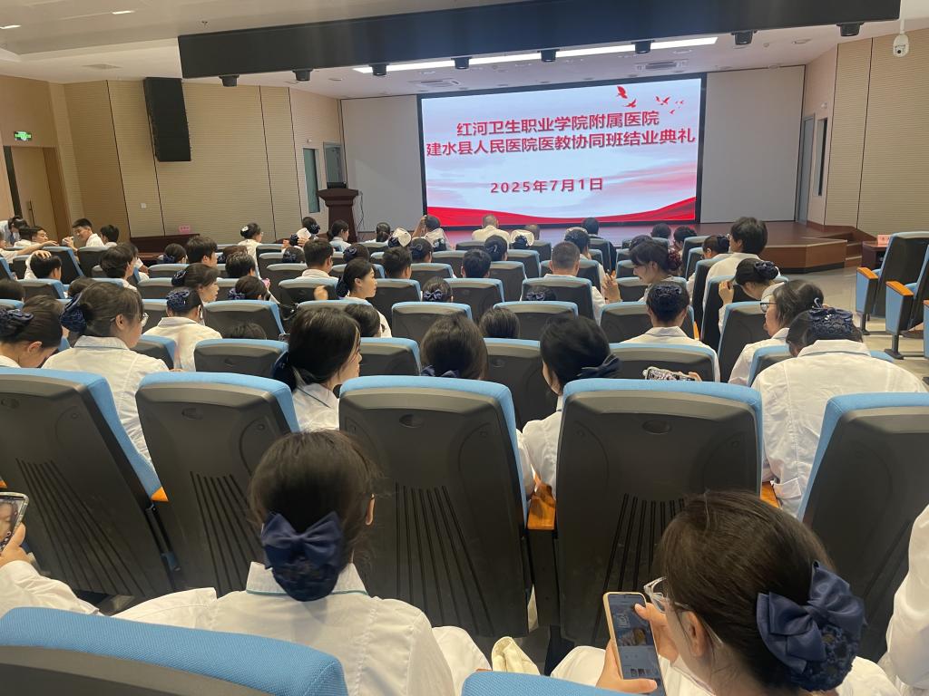 为进一步开展好医教协同班教学活动,促进医教双方的交流合作,2025年7月1日下午,红河卫生职业学院党委委员、副院长李锋带领临床与公共卫生学院、护理学院负责人、班主任到建水县人民医院开展2025年医教协同班工作交流暨授帽仪式活动,建水县人民医院党委书记欧海建、护理部主任罗兰芬等领导出席本次活动。2023级临床医教协同班、2023级护理医教协同班全体同学参加。