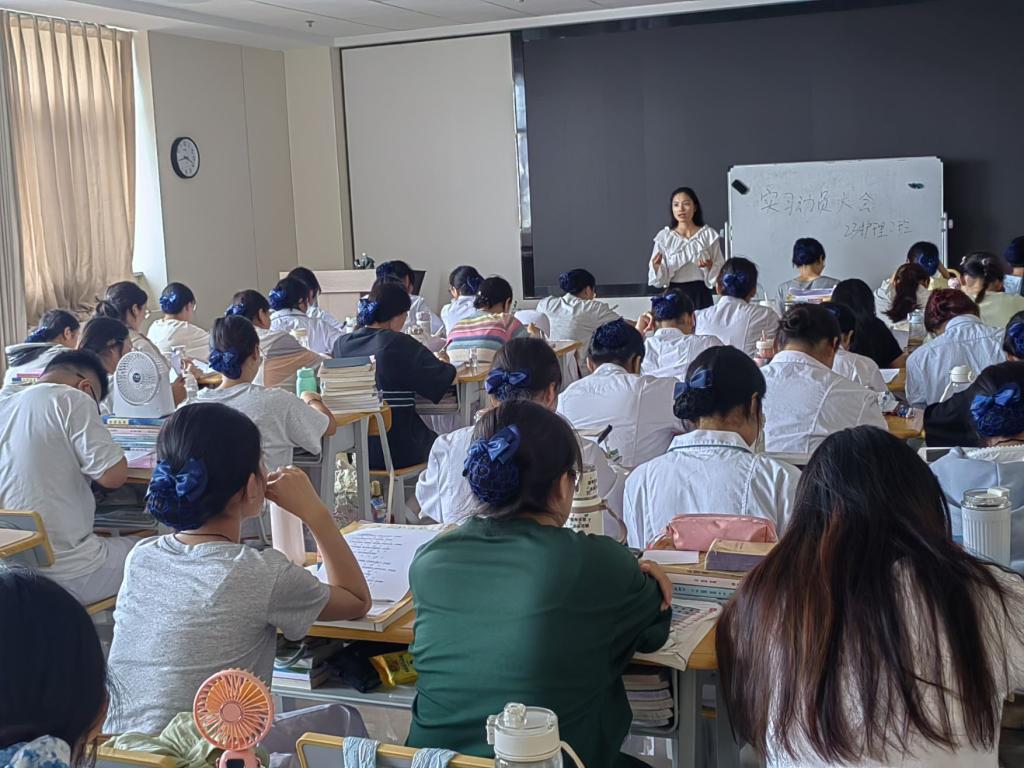 活动结束后,老师们对教学工作中存在的问题进行了总结分析,并对下一步教学工作进行安排。班主任李志英带领61名学生开展实习动员大会,通过互动交流环节全面阐述实习要点与职业规范,深入了解学生在医院的生活适应情况、学习进展与心理状态,以专业指导与暖心关怀为学生树立实习信心,助力其顺利开启职业实践新征程。