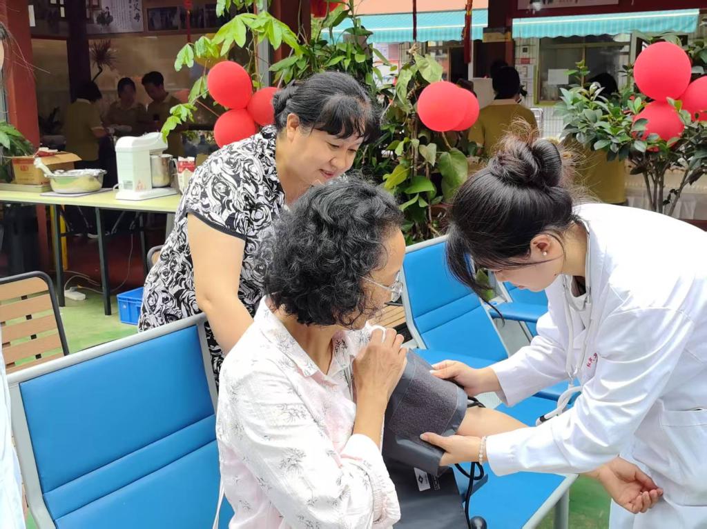 活动伊始师生们迅速投入到健康服务中。老师带领同学们运用所学专业知识,为老人们逐一测量血压,耐心、详细询问老人们的身体状况和日常饮食起居习惯及聊聊家常,场面格外温暖。