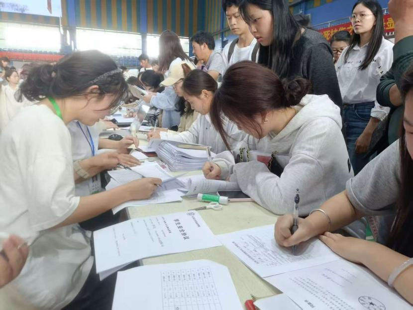 面对部分新生及家长对报到流程不熟悉的情况,老师们耐心细致地讲解步骤,手把手协助完成线上信息填报,有效避免了报到拥堵,让整个流程高效顺畅。