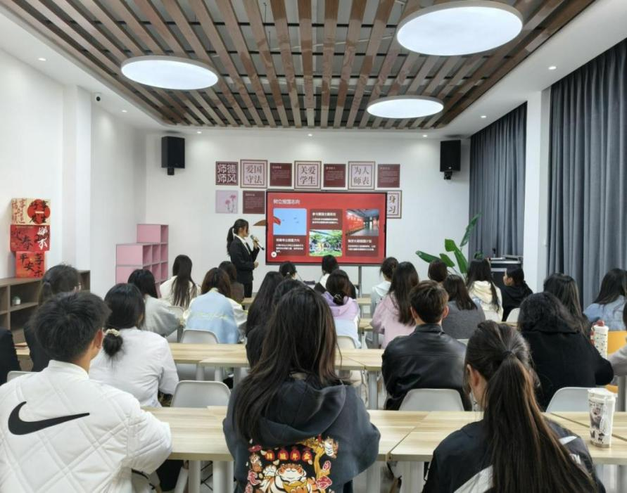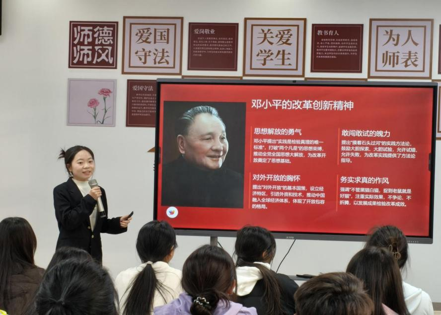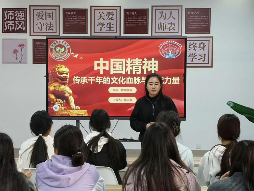 活动伊始,学生科科长范瑜老师介绍,本次活动将通过多角度解读中国精神,助力师生感悟其丰富内涵与实践价值。随后,杨兴爱、丁小丽、钟如意三位同学以PPT结合视频的形式展开分享:杨兴爱围绕“传承千年的文化血脉与时代力量”,从典籍到非遗技艺,阐释中国精神的历史底蕴与当代活力;丁小丽聚焦“爱国主义”,讲述不同时期爱国精神的体现,凸显其凝聚民族力量的作用;钟如意以改革开放成果及代表人物为切入点,诠释“改革创新”的时代动力意义。
