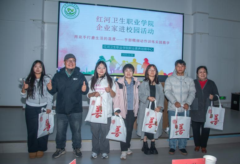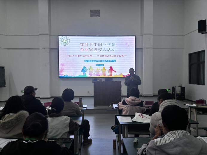 为提升学生手部精细操作能力,涵养工匠精神与人文关怀素养,助力职业素养提升,11月29日14:30,红河卫生职业学院护理学院职业素养培训中心在大教室西1-3开展企业家进校园活动,特邀岳阳市博物馆征集保管部主任万猛做“用双手打磨生活的温度”手部精细动作训练实践教学。