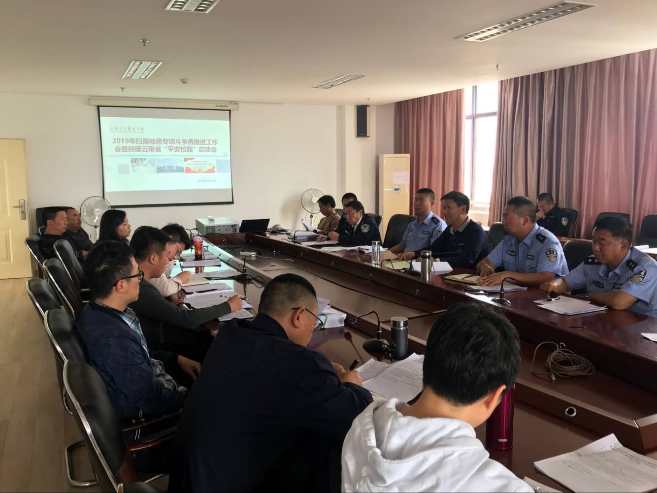为认真贯彻落实中央、省、州扫黑除恶专项斗争有关精神,推动扫黑除恶专项斗争纵深发展,不断提高广大师生对扫黑除恶专项斗争的知晓和参与度,3月19日下午我校在校务管理中心第二会议室召开了2019年扫黑除恶专项斗争再推进工作会暨创建云南省“平安校园”启动会。