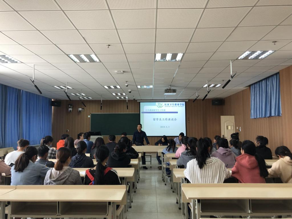4月3日,公共课部留学生工作部举行留学生工作座谈会,对本学期留学生作了具体安排。2017级、2018级留学生临床医学班的同学参加了此次座谈会。