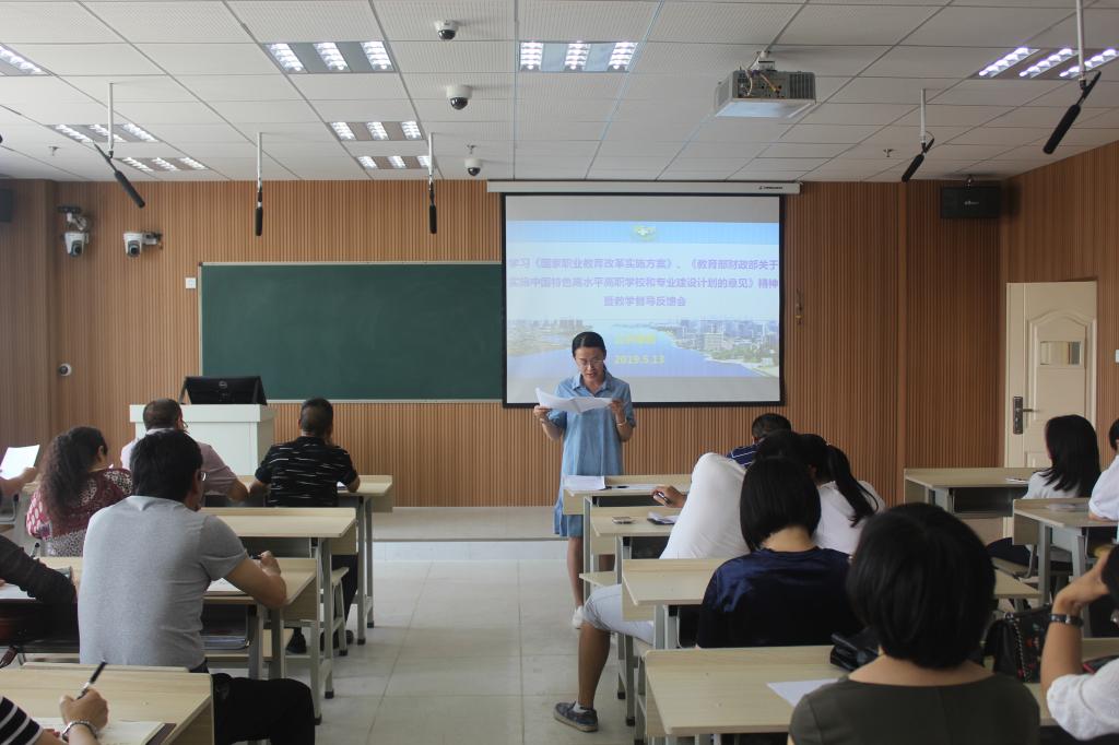 5月13日,公共课部在教育技术中心201召开全体教师会议。会上,公共课部副主任王红亮通报了学院督导组及公共课部教学督导的情况,带领教师学习了《 红河卫生职业学院教学事故和违规行为的认定及处理办法(暂行)》,宣读了近期个别教师在教育教学过程中出现教学行为不规范的处理决定;王娟老师带领教师学习了《国家职业教育改革实施方案》(简称“职教20条”)《教育部财政部关于实施中国特色高水平高职学校和专业建设计划的意见》(简称“双高计划”)。公共课部主任曹学光说,教师要树立不断学习的理念、树立学生是学校生存之源的理念、树立荣辱与共的理念、树立团队是高效运行及发展的理念、树立课堂革命的理念。他还希望,教师通识课程教学要在“服务专业、医学人文”上下功夫,要在听、说、读、写、用、逻辑思维的培养上下功夫,要在如何结合职业性、医学性上下功夫;要关注学科特点与专业的高度融合、关注学生的学涯发展和职业生涯发展、关注“行业”、“岗位”对人才的要求。