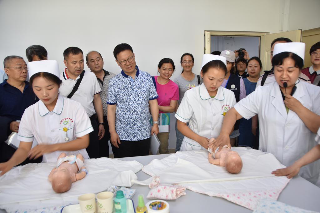中华职业教育社党组成员、副总干事杨农一行在我校领导的陪同下参观了校园文化墙,在综合实训楼先后考察了中药炮制实验室、中药调剂实验室,口腔医学技术实训室、口腔医学实验室等教学实训环境,在实验实训中心还参观了院外、院内急救室,新生儿洗浴中心。杨军副院长还重点对心肺复苏做了讲解和演示,获得了各位参观调研学员的阵阵掌声。
