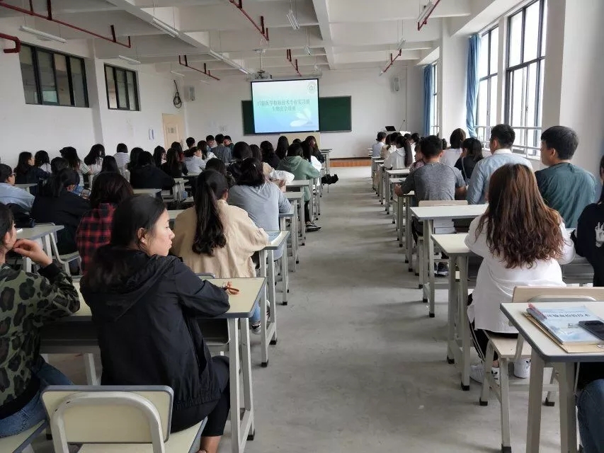 5月31日下午,医学技术系在教技室201对2017级医学技术系检验专业学生进行实习前生物安全培训。