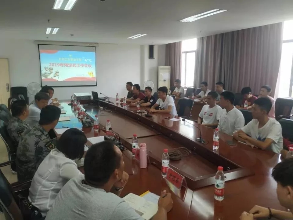 6月27日上午,我校在图书馆九楼第二会议室召开预定兵工作会议,蒙自市人民政府征兵办公室主任(武装部部长)王平,学院党委书记张云学,各系党支部书记,负责征兵专职组织员和已经完成体检、政治考核、“双合格”的16名在校生参加会议。