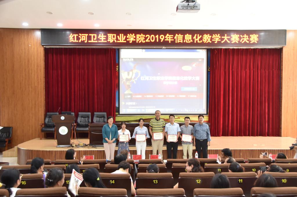 6月22日上午,我校在图书馆报告厅举办2019年信息化教学大赛决赛暨信息化教学能力培训。党委副书记、院长杨泓,副院长杨军、李红,我校全体教师参加了大赛。